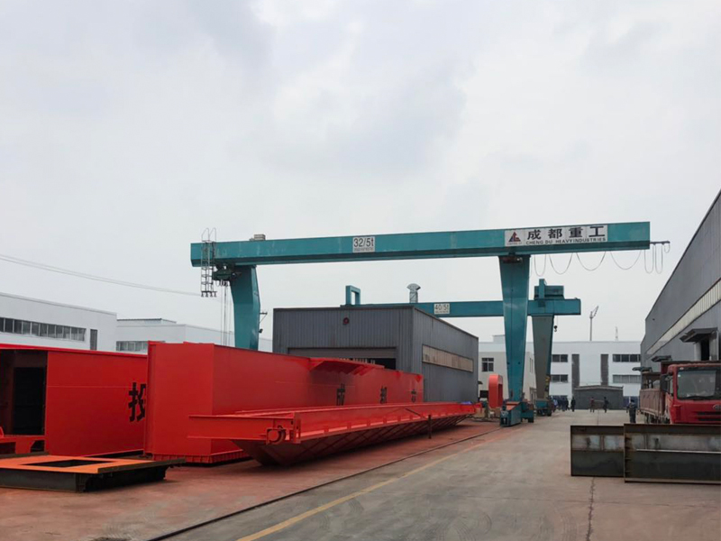 一般的門(mén)式起重機(jī),多采用箱形和桁架結(jié)構(gòu),應(yīng)用非常廣泛??蛇\(yùn)輸各類(lèi)成件及散狀物料,起重100噸以下,跨度4~39米。